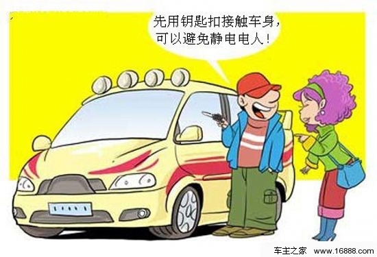 車主可利用一些用車細節來防靜電,可以在開車門前先拿其他鑰匙接觸汽車金屬部分放電,但千萬不要用車鑰匙,因為車鑰匙內部帶有防盜芯片,利用車鑰匙放電可能會失去防盜功能。