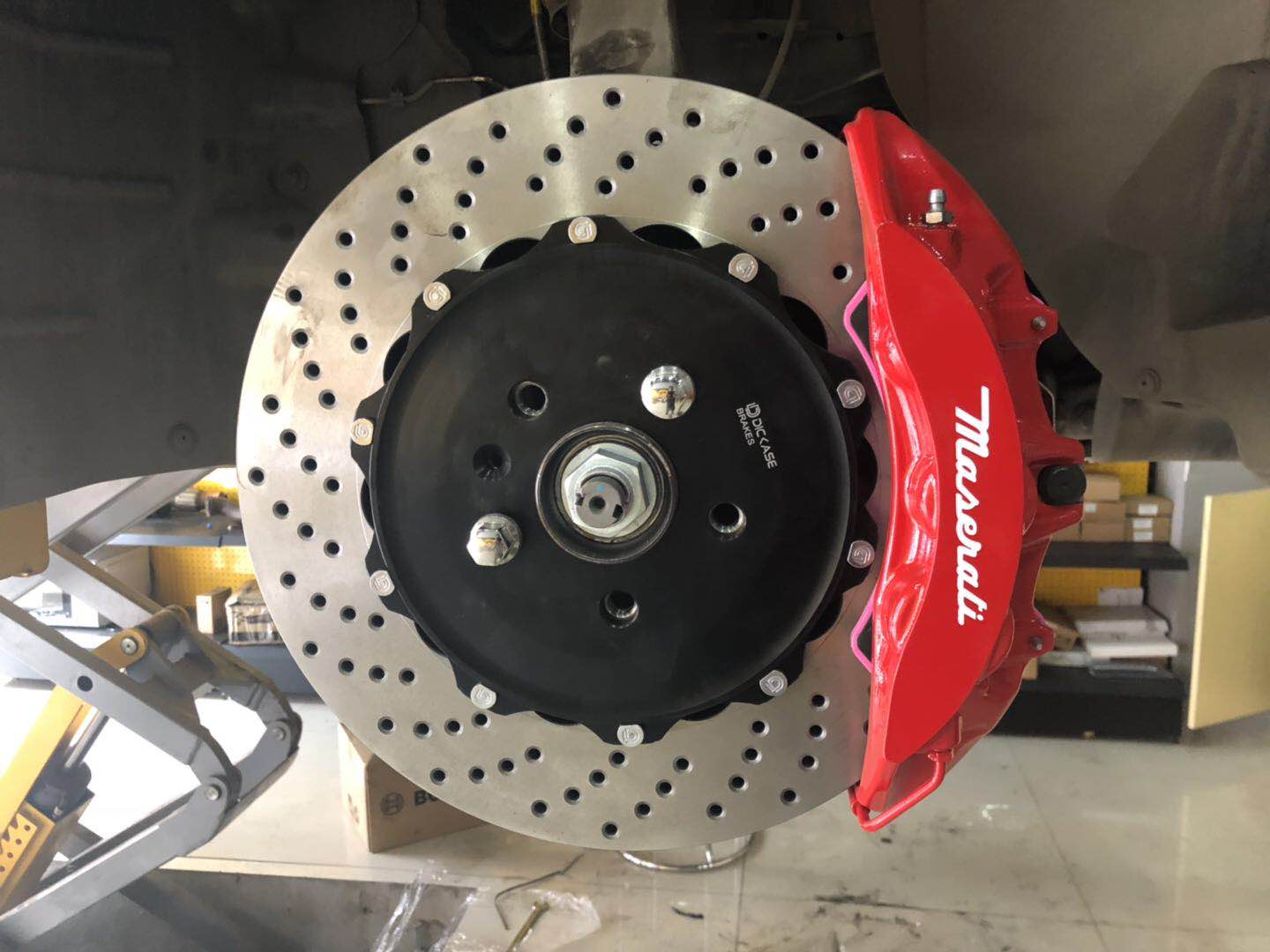 客戶選擇了brembo V6 定制瑪莎拉蒂LOGO卡鉗搭配DICASE高碳380*34mm性能盤,有助于提高駕乘駕駛度,并減少抖動和噪音。